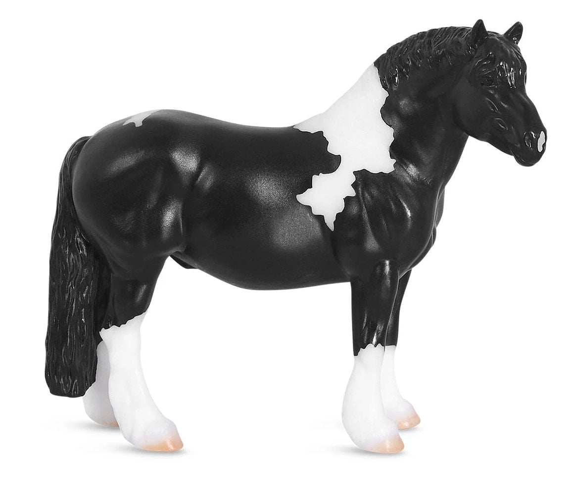 Stock #B-SM-10622 - Every barn holds a story. With Breyer's Horse Foal Surprise sets, that story begins with a foal waiting to be discovered behind the barn door. Get ready to welcome a new arrival! The Peaceful Gardens Family includes a stately black tobiano Stallion, a gentle light grey mare, and a surprise foal tucked safely away inside the barn. Open the barn door to reveal the newest member of the family and let the story unfold. Stablemates Series made by Breyer, horses average 4" L x 2½" H, for ages 4 & up.