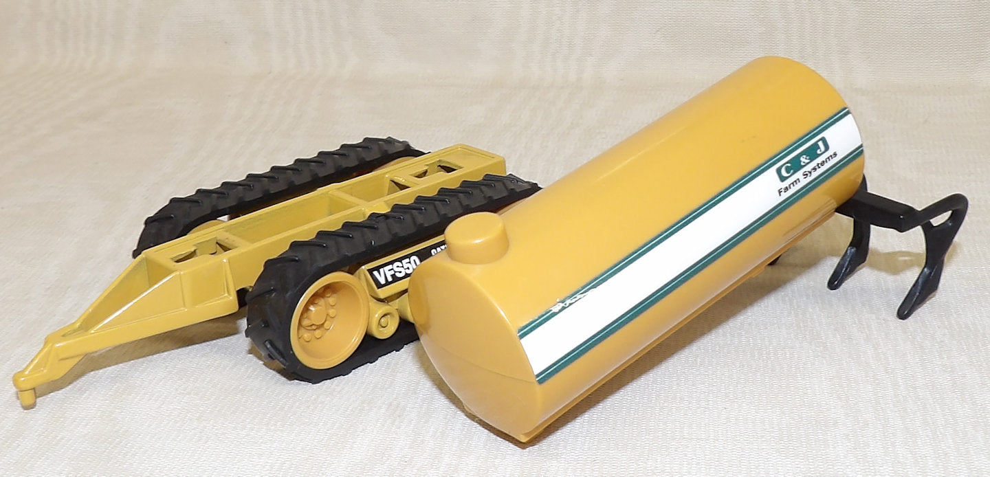 Stock #2324EO - die-cast metal frame with movable rubber tracks, removable plastic sludge tank. Tank slides back and then lifts up to remove. In new condition, the bubble packaging has been cut open on the top. Made in 1995 by Ertl, 4½" L x 2" H x 1¾" W, for ages 3 & up. Vintage, older out of production toy. Opened packaging, AS IS.