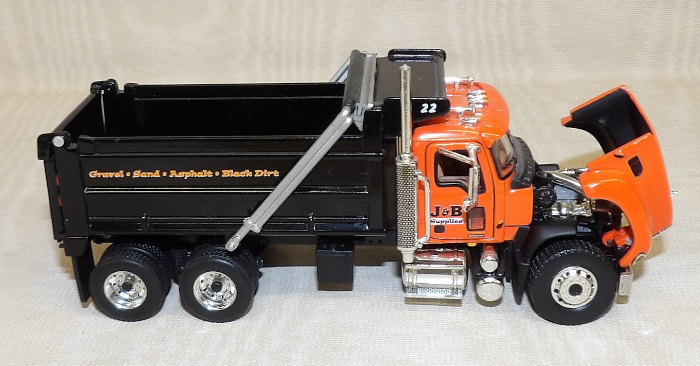#60-0027 1/64 Orange J & B Supplies Mack Granite Dump Truck - Missing Cylinder