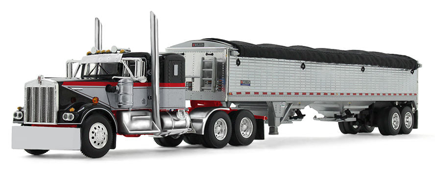 #60-2137 1/64 Gray & Viper Red Kenworth W900A with 36" Sleeper & Silver 43' Wilson Pacesetter Tandem-Axle Grain Trailer