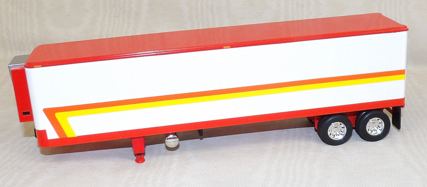 Stock #619452 - trailer is all die-cast metal with rubber tires, opening rear doors and adjustable trailer stands. Made by DCP by First Gear, 7¾" L x 2½" H x 1 5/8" W, for ages 14 & up. NO BOX. Not designed or recommended for child's play.