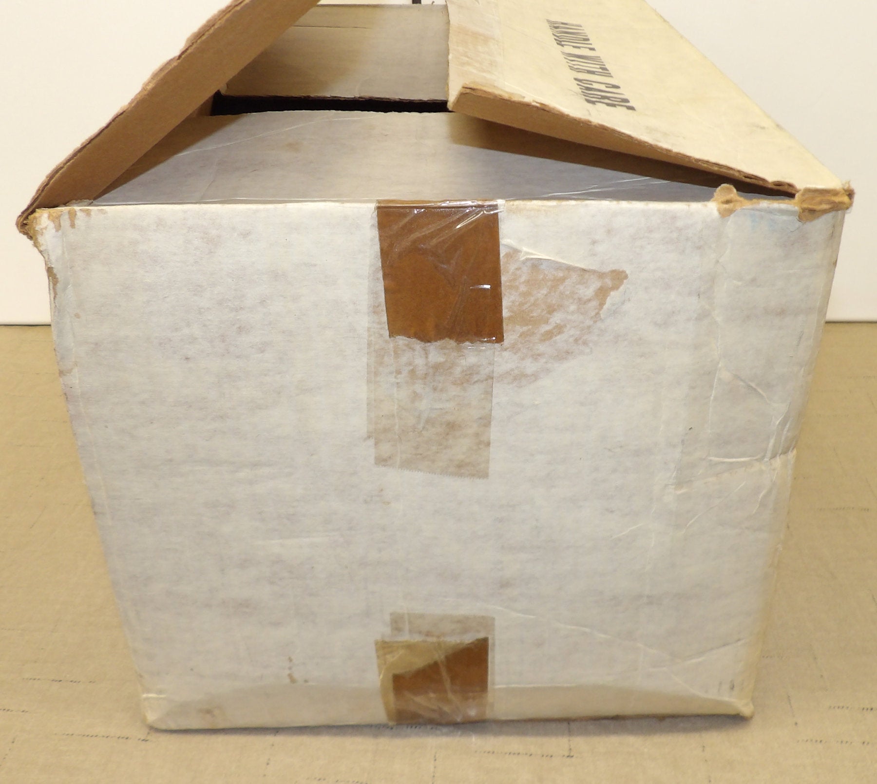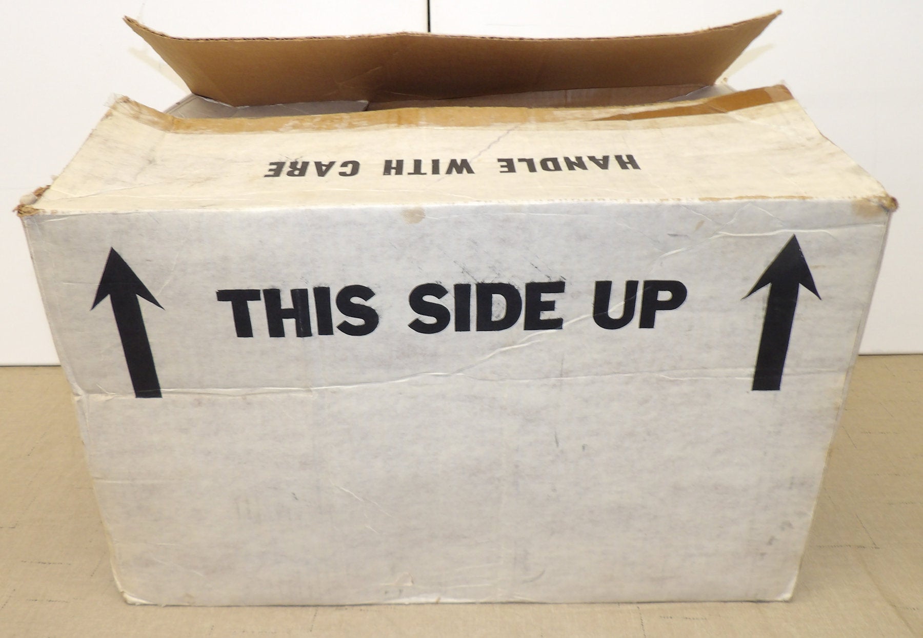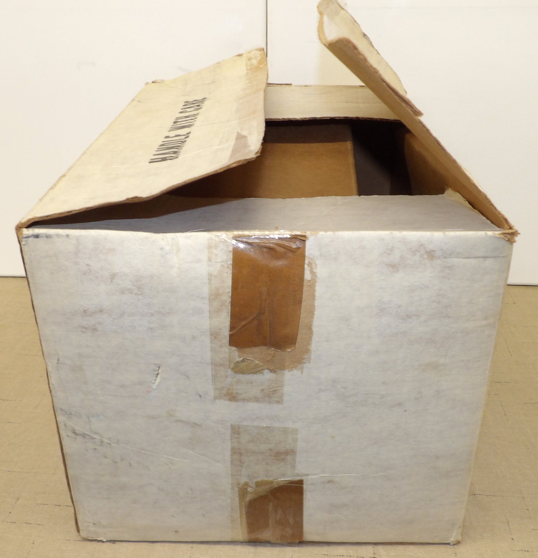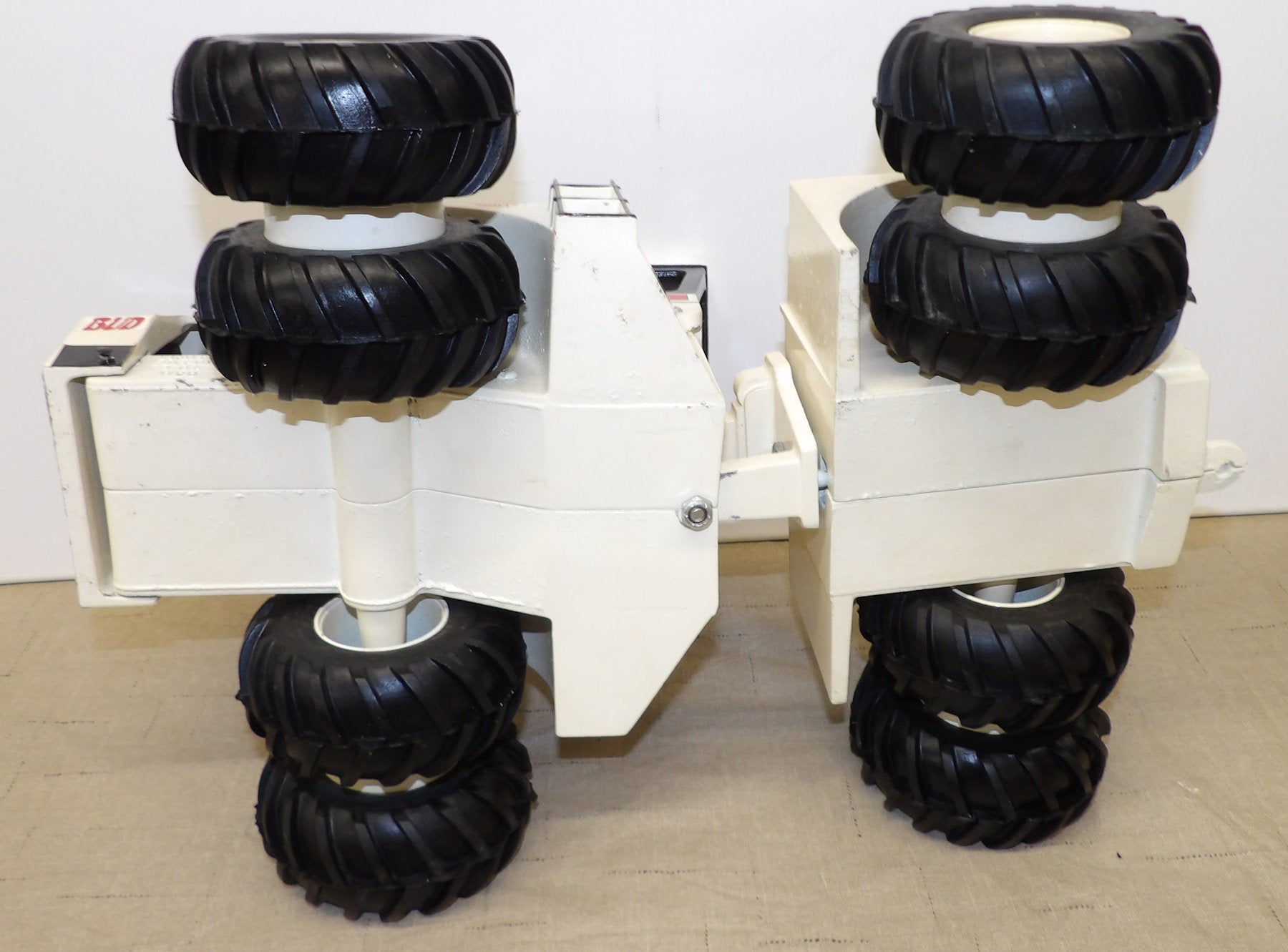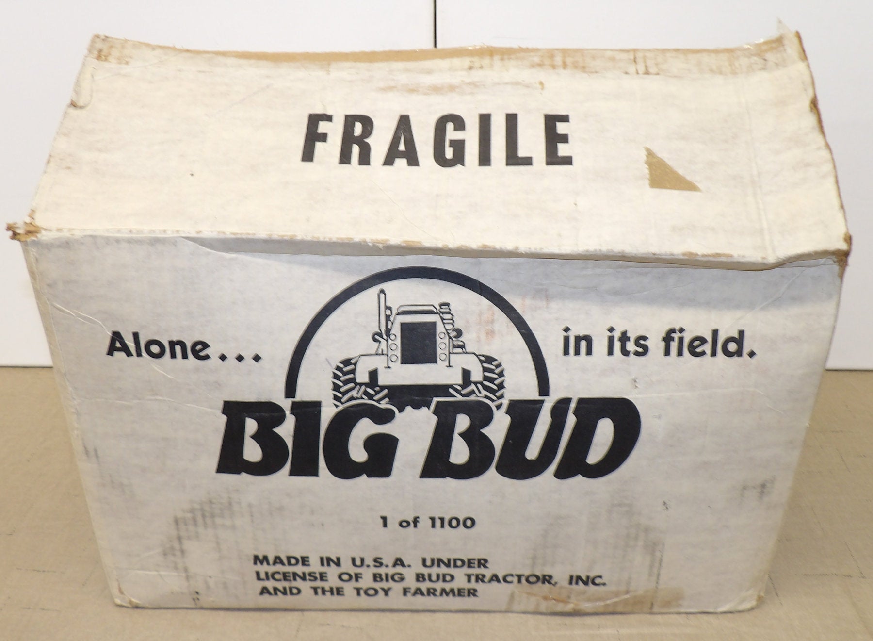 Stock #CB1403 - "Limited Edition 1 of 1100" cast into side of tractor. All cast metal with rubber tires, plastic rims, articulated steering, no cab windows, cab tilts back and hood tilts forward to reveal engine, hole-style hitch. Tractor is in very good condition with some minor paint imperfections on the rear fenders and steps. With original box, box has some wear and crushed corners. Custom built in 1994 by Martin Fast (Mini Big Bud.), 17" L x 9½" H x 12½" W, for ages 14 & up. Custom built, vintage older out of production toy. AS IS.