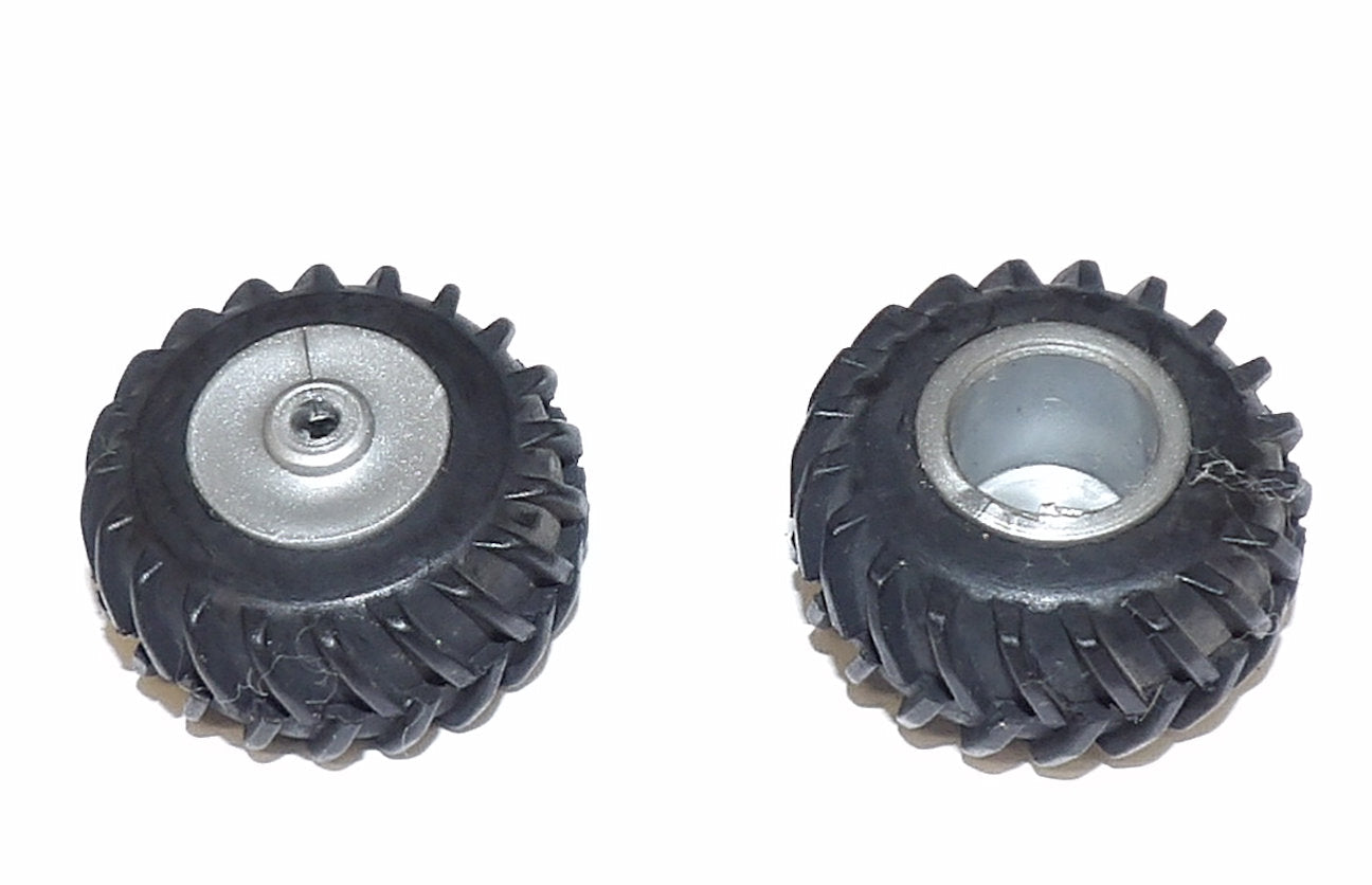 Stock #SY220 - pair includes 2 rubber tires and 2 plastic rims, 1" high x 1/2" wide, 1/8" axle hole.